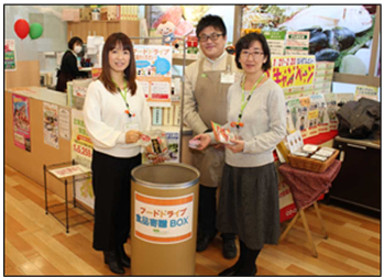 物流センター残品の米や農産品、流通段階での破袋した米をフードバンクなどに寄贈している。また、一部の組合員活動施設や店舗に常設のフードドライブボックスを設置している。商品はフードバンクなどを通じ、生活困窮者、福祉施設、子ども食堂などに提供されている。2018年度は、農産物予備品1万7000t、米7.6t、フードドライブ6.7tを寄贈した。