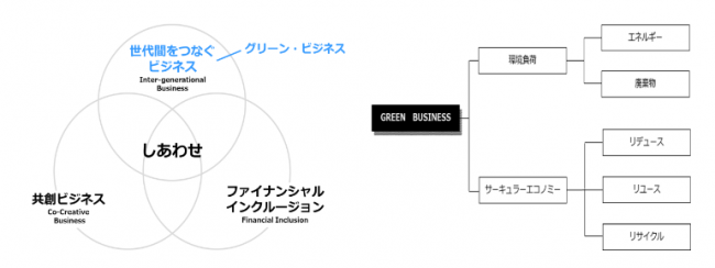 丸井グループでは、ビジネスと環境への配慮、社会的課題の解決、ガバナンスへの取り組みが一体となった未来志向の「共創サステナビリティ経営」を進めている。2019年には本格的なサステナビリティ経営に向け、長期ビジョン「丸井グループビジョン2050」を策定している。これに基づき環境負荷低減や、リデュース、リユース、リサイクルといったサーキュラーエコノミー、温室効果ガスの削減、再生可能エネルギーの導入などの「グリーン・ビジネス」活動を進めている。