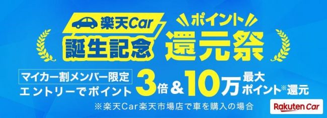 今回の「楽天Car」へのブランド統合を記念に、2月3日から「楽天Car誕生記念 ポイント還元祭」を開催する。期間中、キャンペーンにエントリーしたうえで、楽天が運営する自動車を保有するユーザー向けのメンバーシッププログラム「マイカー割」に登録し、「楽天Car」ブランドの対象サービスや、「楽天市場」を利用したユーザーに、「楽天スーパーポイント」の付与率アップや還元をしていく。
