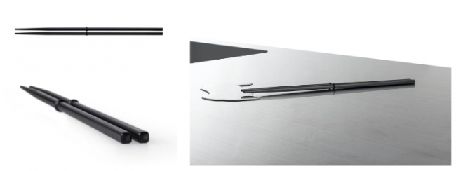 平坦な場所に菜箸を置いたとき、箸先がつかないよう、箸の真ん中にリング状の突起を設けることで、箸先が持ち上がるようになっている。また箸頭を四角の形状にして転がりにくくしている。使い勝手が損なわれないように、リング状の突起は最小限のサイズに設計している。また清掃性への配慮のため、ワンパーツで溝のないデザインにしている。