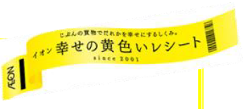 「イオン 幸せの黄色いレシートキャンペーン」活動は 2001年から、毎月11日の「イオン・デー」に実施されている。店舗にボランティア団体の名称と活動内容が書かれた箱が設置される。お客は受け取った “黄色いレシート” を、応援したいと思うボランティア団体の箱に投函する。イオンはレシートの合計金額の1%に相当する商品を各団体に贈呈する。2012年からは、3月のキャンペーン期間を3日間に拡大している。寄付先は岩手県「いわての学び希望基金」、宮城県「東日本大震災みやぎこども育英募金」、福島県「東日本大震災ふくしまこども寄附金」だ。このキャンペーンを通じて被災地に贈られた寄付金額は、累計約10億1381万円に上っている。