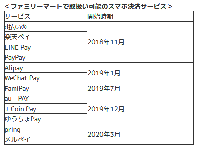 同社では、「FamiPay」をはじめとした合計10種類のスマホ決済サービスを導入している。実質的には4月から、メルペイとpringが追加され、12種類を提供することになる。