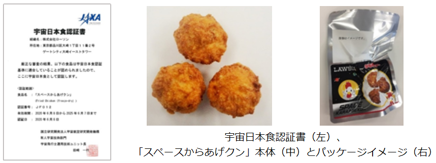 (株)ローソン(東京都品川区、竹増貞信社長)の「スペースからあげクン」が6月8日に「宇宙日本食」として正式に認証された。