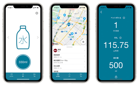さらに「水」アプリを開発して、7月1日(水)から、無印良品ネットストア「水」特集ページでダウンロードを始める。このアプリでは、自身の給水量や、給水することで削減できるPETボトルの廃棄量およびCO₂排出量がわかる。また、給水機を設置している無印良品店舗の位置情報のほか、東京都水道局が「Tokyowater Drinking Station」として紹介する、公共施設など都内約700カ所以上の給水スポットを掲載していく。今後も各自治体の給水スポット情報を充実させていく計画だ。