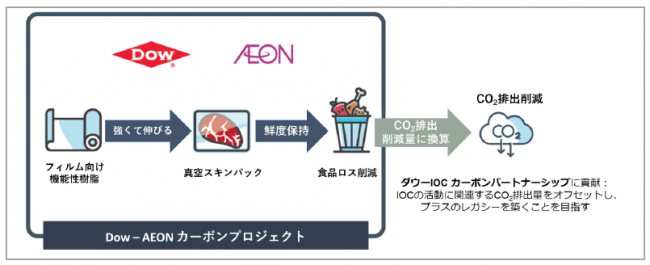 この協定に基づいて、イオンはダウ社のアイオノマー樹脂を使った食品の真空スキンパック包装をイオングループの商品に採用する。