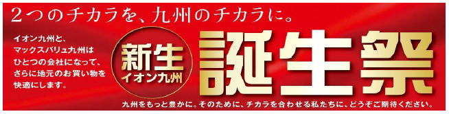 新生イオン九州の誕生を記念して9月3日(木)~6日(日)の4日間、「イオン」「イオンスタイル」「マックスバリュ」219店舗において新生イオン九州誕生祭を開催する。