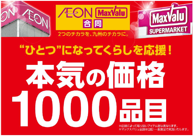 新型コロナウイルス感染症拡大によって、経済活動には深刻な影響がもたらされた。同時にそれによって生活への不安感が蔓延した。この生活不安を解消するべく、九州の「イオン」「イオンスタイル」「マックスバリュ」「ワイドマートD&F」225店舗で実施する。対象商品は食料品445品目、ベビー用食料品86品目、リカー125品目、日用品364品目。