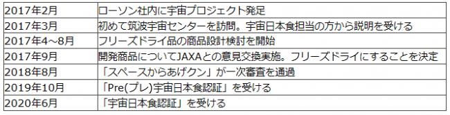 スペースからあげクンは、ローソンの看板商品「からあげクン」の味を再現し、フリーズドライ化した宇宙食。2019年10月にJAXAが宇宙日本食認証基準の特例に定める野口宇宙飛行士向けの「Pre(プレ)宇宙日本食」として認証、2020年6月には「宇宙日本食」として認証されている。