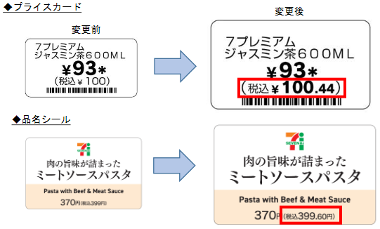 順次変更するにあたり、店内ではポスターで告知していく。変更対象はプライスカード、品名シール、店内販促物、セブン-イレブンホームページ、セブン-イレブンアプリ等の表示価格。