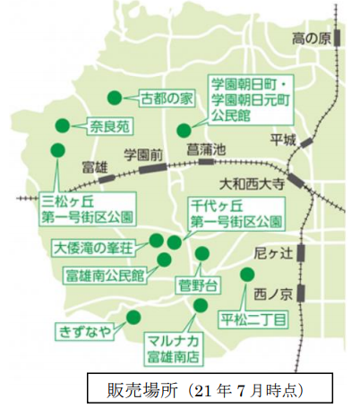 販売場所は奈良市内の中町、西登美ヶ丘、三松ケ丘、菅野台、千代ヶ丘、平松、学園朝日町等。週5日稼働し、1日最大6カ所で販売する。
