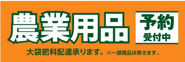 農業用品の先行予約では、必要な商品を、より安く提供する。また大袋肥料の宅配が店舗受け取りにした場合、店頭価格よりも安く販売し、昨年は期間限定だった中型トラックでの宅配引き渡しを全期間で実施する。店舗に来なくても、指定先の住所で大袋肥料を受け取れるため、顧客の負担が軽減できる。大袋肥料は50袋からの予約になる。また予約量によっては大型トラック(10t)での宅配引き渡しも行う。