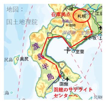 また②の遠隔地における店舗への商品配送の共同化では、物流効率があまり良くない遠隔地における店舗への商品配送の共同化の効果測定を行う。函館エリアの遠隔地において、ローソンとセブン‐イレブンの組み合わせで共同化した店舗配送を実施する。これにより遠隔地の店舗への配送効率の向上、買物困難者対応などを検証する。