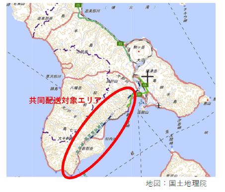 3社は昨年、東京都内の湾岸エリアで共同配送の実証実験を実施した。今回は店舗密度が都市部よりも低い地方部において、①「コンビニの配送センター間の物流の共同化」と「②遠隔地店舗(買物困難地域)の配送の共同化」についての実証実験となる。