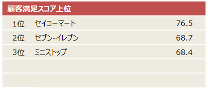 コンビニエンスストア業種は1位セイコーマート、2位セブン-イレブン、3位ミニストップ。セイコーマートは6年連続1位。