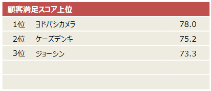 家電量販店業種は、1位ヨドバシカメラ、2位ケーズデンキ、3位ジョーシン。ヨドバシカメラは12年連続1位。