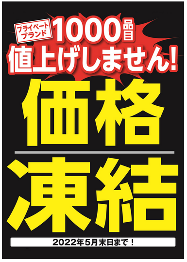 天候不順や原油価格の高騰により、電気・ガス料金の値上げや食品の値上げが相次いでいる。また大手日用品メーカーによる値上げ方針が出されるなど、今後も多くの商品で値上げが想定される。ミスターマックスはディスカウントストアとして、値上げされたメーカー商品の価格を抑えるとともに、自社のプライベート・ブランド商品の価格を据え置き、お客の暮らしを応援する。