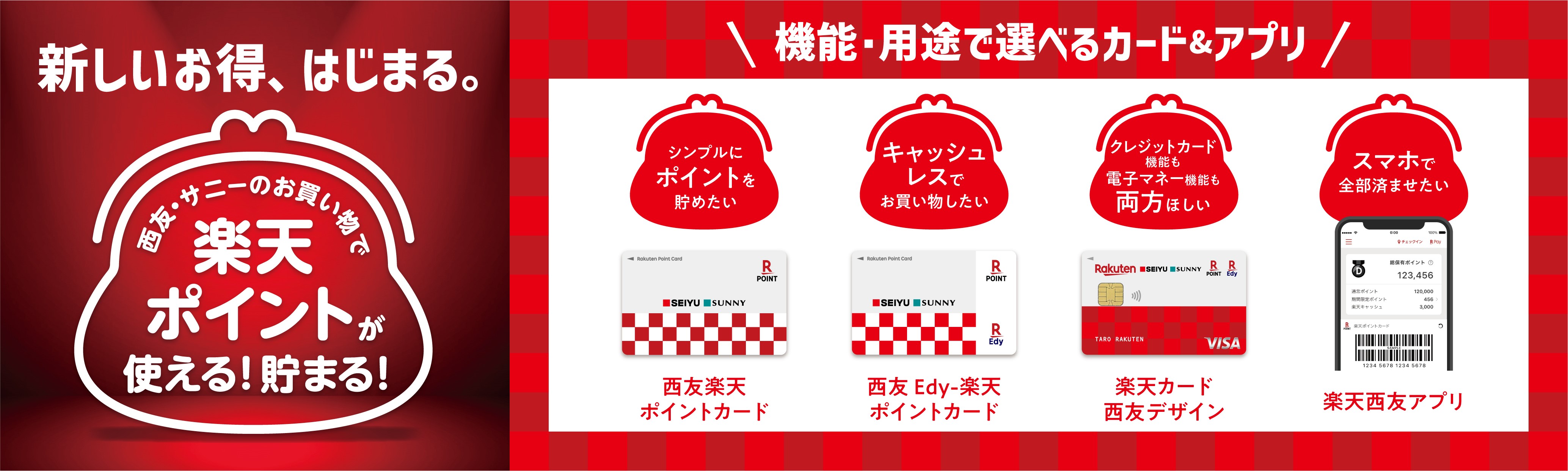 また、 同日からは「楽天ポイントカード」が西友グループの全店舗で利用できるようになる。