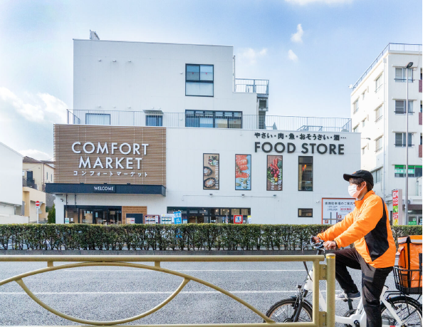 クイック宅配サービスは、オ二ゴーが運営する「OniGOアプリ」で顧客が商品を選択し、「コンフォートマーケット西馬込店」に複数名常駐するオ二ゴー所属のピッカー(収集担当)がピッキングし、ライダー(配達担当)が自宅などの指定先へ配達する仕組みだ。スピード配送のQコマース市場を先導するオ二ゴーの商品配送力とヨークが得意とする生鮮・惣菜を中心とした商品力を相互補完的に組み合わせることにより、幅広い品揃えで素早く便利な宅配サービス事業を確立させることを目指す。