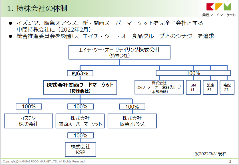 (株)関西フードマーケット(兵庫県伊丹市、林克弘社長)が中期経営計画方針(2022~2023年度、2024~2025年度)を発表した。同社は、2022年2月にイズミヤ(株)、(株)阪急オアシス、新・関西スーパーマーケットを完全子会社とする中間持株会社として設立された。エイチ・ツー・オーリテイリングが63%の資本を有する。