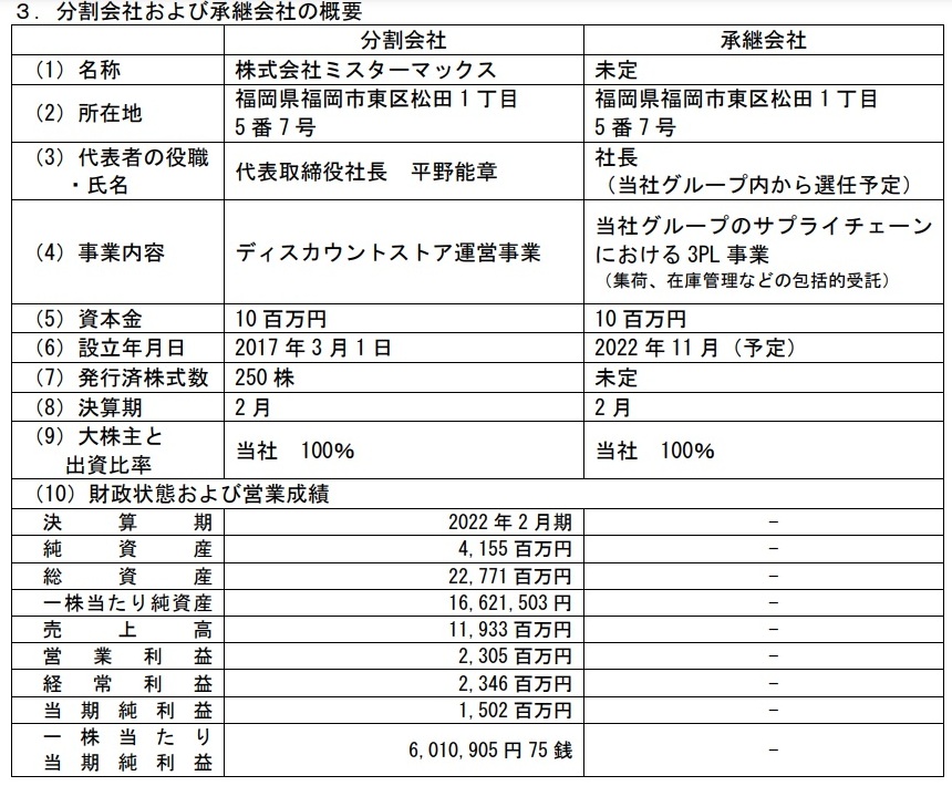MrMax news|ディスカウント事業の物流事業を会社分割し新子会社が継承