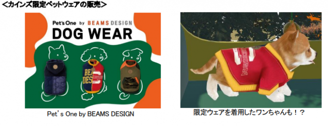 2階コラボレーションフロアでは、2022年11月中旬から一部のカインズ店舗・カインズオンラインショップ限定で販売を開始した、BEAMSライセンスブランド「BEAMS DESIGN」プロデュースのペットウェア“Pet’s One by BEAMS DESIGN”を販売する。ウェアを着用したペットとVR空間内で一緒に写真を撮ることもできる。