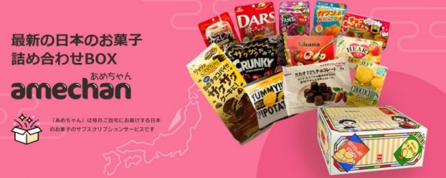 「amechan」はサブスクリプションに契約すると、日本の菓子メーカーが日本市場向けに販売している最新の菓子を中心に詰め合わせたオリジナルBoxが、毎月届くサービスだ。
