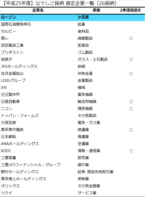 ローソンが、女性活躍推進に優れた上場企業で構成される「なでしこ銘柄」にコンビニエンスストアとして初めて選出された。なでしこ銘柄は経済産業省と東京証券取引所が共同で2012年度から選定・発表しているもので、今回は計26銘柄が選ばれた。