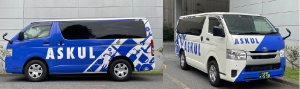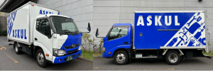 新デザインは ASKUL の「あらゆる仕事場の日常を支える幅広い品揃え」をコンセプトとして社内公募を行い、選考を経て入社2年目の女性社員のデザインが採用された。トイレットペーパーやボトル飲料、手指消毒ボトル、工具などが描かれ、定番アイテムである文房具だけではない、幅広いカテゴリの商品がASKULで揃うことを表現している。また、車体はアスクルのコーポレートカラーである青を基調に、青と白の2色で彩られ、全面にロゴを大きく掲げることで、ひと目で「アスクル」の印象を強く感じられるラッピングとなっている。