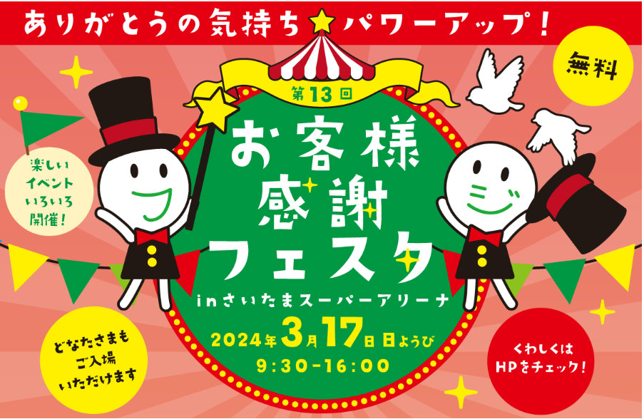 (株)富士薬品(埼玉県さいたま市、高柳昌幸社長)は3月17日(日)に、さいたまスーパーアリーナで「富士薬品グループ 第13回お客様感謝フェスタ inさいたまスーパーアリーナ」を開催する。
