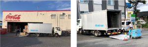 コカ・コーラ ボトラーズジャパンの店舗配送トラックを使用し、ファミリーマート店舗に商品を配送する。まず1台でスタートし、今後の検証を通じて台数の拡大を検討する。