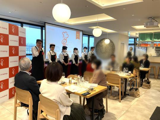 ユナイテッド・スーパーマーケット・ホールディングス(株)(東京都千代田区、藤田元宏社長)は2月5日(月)、独自の人材育成プログラム「リテールシェフアカデミー」の受講生による、1日限定レストラン「リテールシェフレストラン」イベントを開催した。抽選で選ばれた店舗を利用する一般客16名がイベントに参加した。