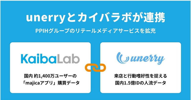 (株)パン・パシフィック・インターナショナルホールディングス(PPIH)グループで、デジタル領域を担う(株)カイバラボ(東京都目黒区、森谷健史社長)と、リアル行動データプラットフォーム「Beacon Bank」を運営する(株)unerry(東京都港区、内山英俊社長CEO)は、PPIHグループのリテールメディアサービス拡充に向けた連携を開始した。