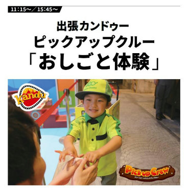 また屋内型仕事体験テーマパーク「カンドゥー(Kandu)」のアクティビティから、デリバリークルーのユニフォームに着替えて、注文された商品を届ける「ピックアップクルー」のおしごと体験ができる。