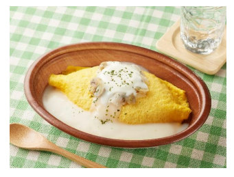 「ホワイトソースオムライス」は、マッシュルーム、たまねぎ、鶏肉、北海道産4種のチーズに北海道牛乳を合わせたチーズソースをトッピングしたオムライス。レンジで温めるとチーズソースがとろける仕様。本体価格は498円(以下同)。