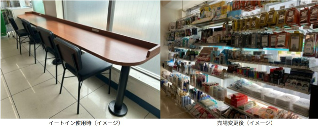 しかし新型コロナウイルス感染症の発生以降、お客のコンビニエンスストアの利用方法が多様化し、イートインの利用にも変化が見られるようになった。そこで、店内スペースの有効活用、幅広い商品の提供を目的にイートインの売場化を推進していく。