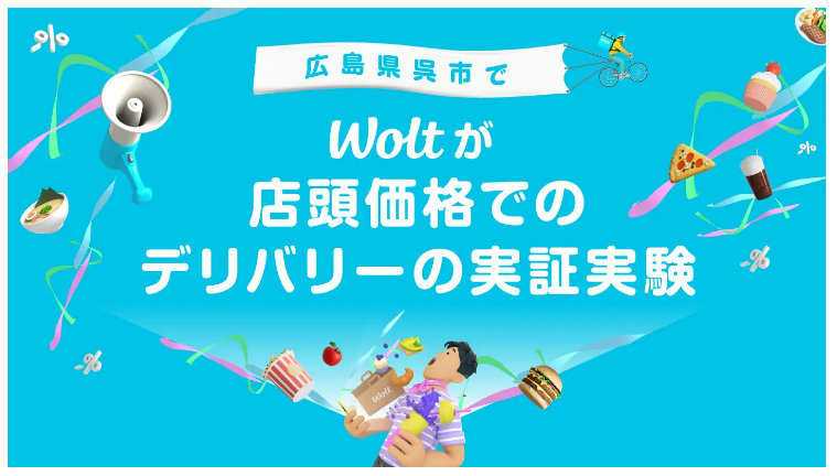 デリバリーサービス「Wolt(ウォルト)」を展開するWolt Japan(株)(東京都渋谷区、ナタリア・ヒザニシヴィリ代表)は、10月21日(月)から、広島県呉市でデリバリー商品価格を店頭と同じ商品価格とする実証実験を開始した。デリバリーの商品価格を一斉に店頭と同じ商品価格とする取り組みは、フードデリバリー業界でも初めての試みとなる。