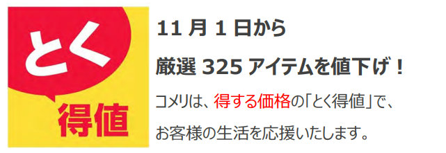 コメリnews|「とく得値」325品目値下げ/4・5・7・8・10月に次いで6回目