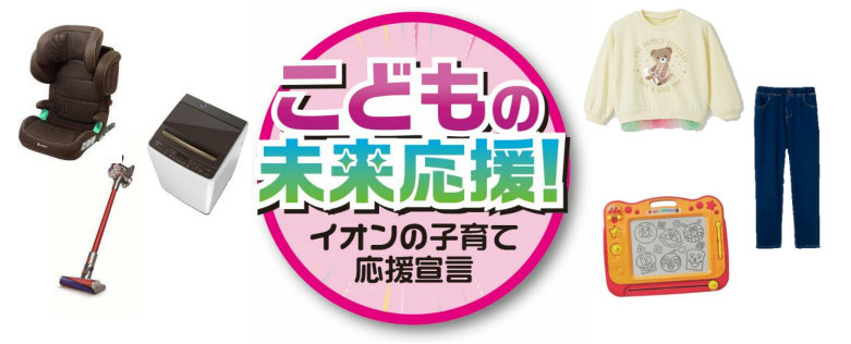 今回の「児童手当」の拡充に合わせ、イオン九州は「こどもの未来応援!イオンの子育て応援宣言」と題し、子育て世帯の顧客を対象に欲しいを後押しする生活応援企画を実施する。