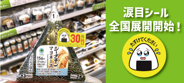(株)ファミリーマート(東京都港区、細見研介社長)は3月11日(火)から、消費期限の迫ったおむすびや弁当などの中食商品に使用する値下シールを、消費者の感情に訴えかける「涙目シール」に変更していく。