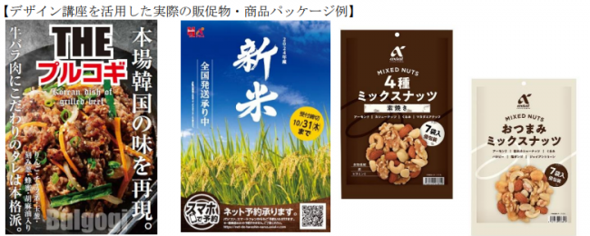 受講生たちは、デザイン講座で学んだ内容を活用し、実際の販促物や商品パッケージのデザイン制作を進めた。