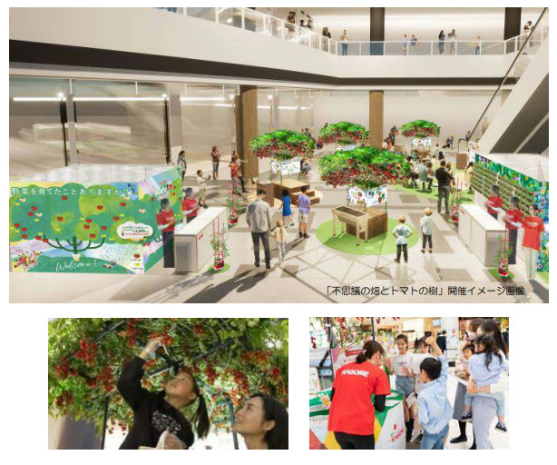 イオンモール福岡では3回目の開催となる「不思議の畑とトマトの樹」は、「植育(しょくいく)から始まる食育」を広める取り組みとして、2022年からカゴメが実施しているイベントだ。