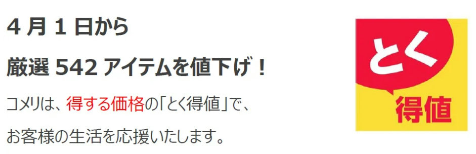 コメリnews|4/1から「とく得値」厳選542品目を値下げ
