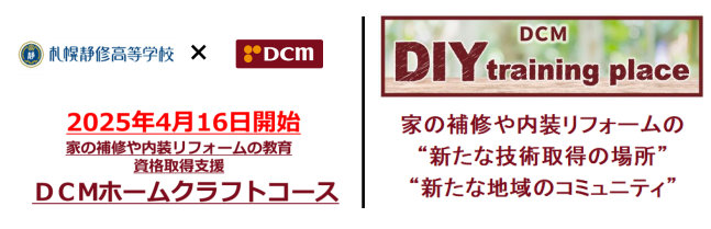 また「ホームクラフトコース」のプログラム、従業員講師の育成を行うため、北海道札幌市の「DCM西岡店」内に実技指導ができる「DCM DIY training place」を開設する。