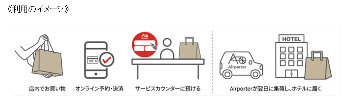 観光客が購入した商品を店舗で預けるだけで、Airporterが宿泊ホテルまで配送する。手荷物の負担を軽減することで、より快適なショッピング体験を提供して、購買促進効果を期待する。