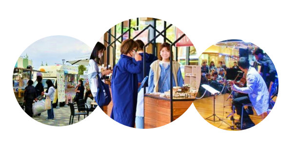 「マーケット広場」は、約3300㎡の中央の広場は、スポーツ・イベントを楽しむスペースを設置。キッチンカーによるワンハンドメニューの販売やシーズンマーケット、音楽イベントの開催のほか、地元企業の催しやPRの場としても活用できる。また、広場内には、世界で人気のアミューズメントミニゴルフ「CRAZY GOLF」が出店する(秋オープン予定)。通常のパターゴルフでは味わえない仕掛けを乗り越えてカップインを目指す新感覚ゴルフゲームだ。
