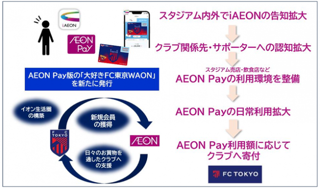 今後は、iAEONを活用したFC東京との連携企画やスタジアムおよび周辺施設でAEON Payの導入を進める。また、FC東京とホームタウンエリアにおけるイオングループの店舗が連携した取り組みも実施する。