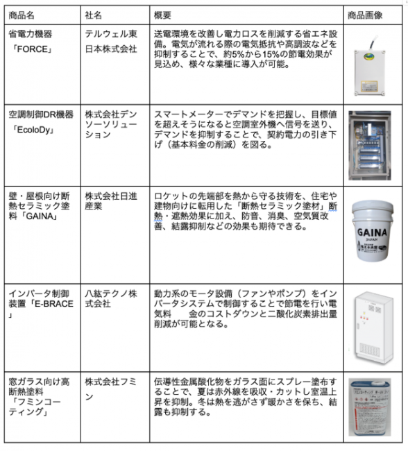 現段階では、省電力機器、空調機器、断熱塗料など5つの商品・サービスがラインアップされているが、今後は他の商品・サービスの導入も検討する。