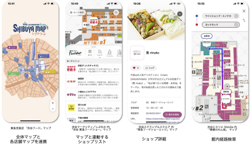 今回の主な取り組みでは、各店舗が渋谷のどこにあるか、各店舗内のショップがどこにあるか、ショップの位置確認や店舗内の経路検索がスマホから簡単にアクセスできるデジタルマップを導入する。