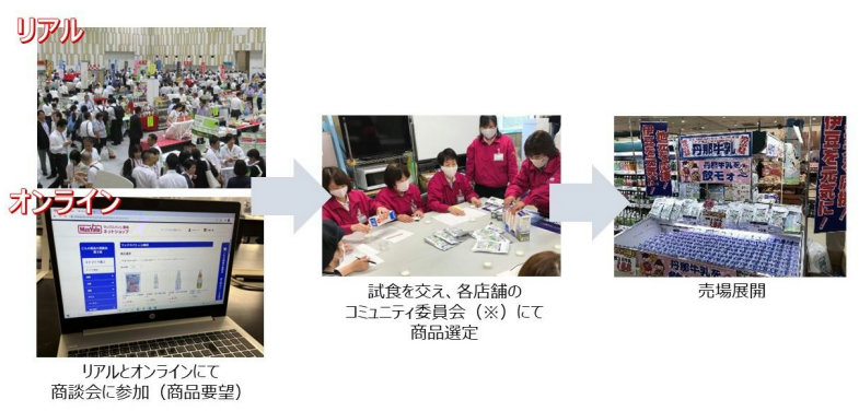 この取組みを一層深耕させるため、2014年から「じもの商品大商談会」を開催している。より多くの従業員が参加できるように、リアルとオンライン両方で開催する。