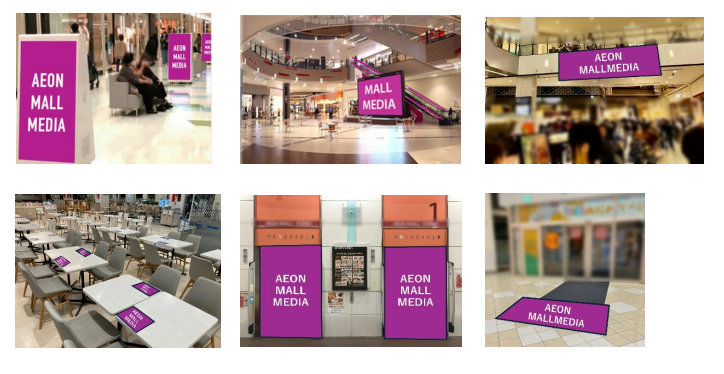 7モール計244面のサイネージ、約5000座席あるフードコート、エレベーターエスカレーターなど館内スペースを最大限活用した広告展開と、グループシナジーを活かし、イオン・イオンスタイル売場とも連動することで、モール全体でブランドの世界観を体感できる、新たな広告モデルを提案する。